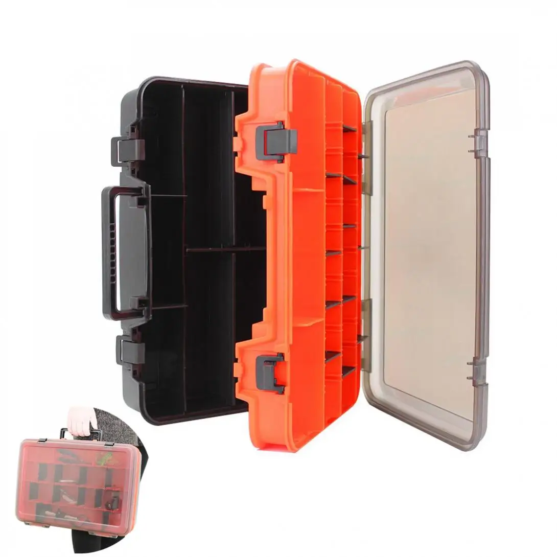 Double Side 14 Compartments Fishing Lure Box for Minnow Shrimp Bait Metal Spoon Lures Storage Multi-function FishingTackle Box