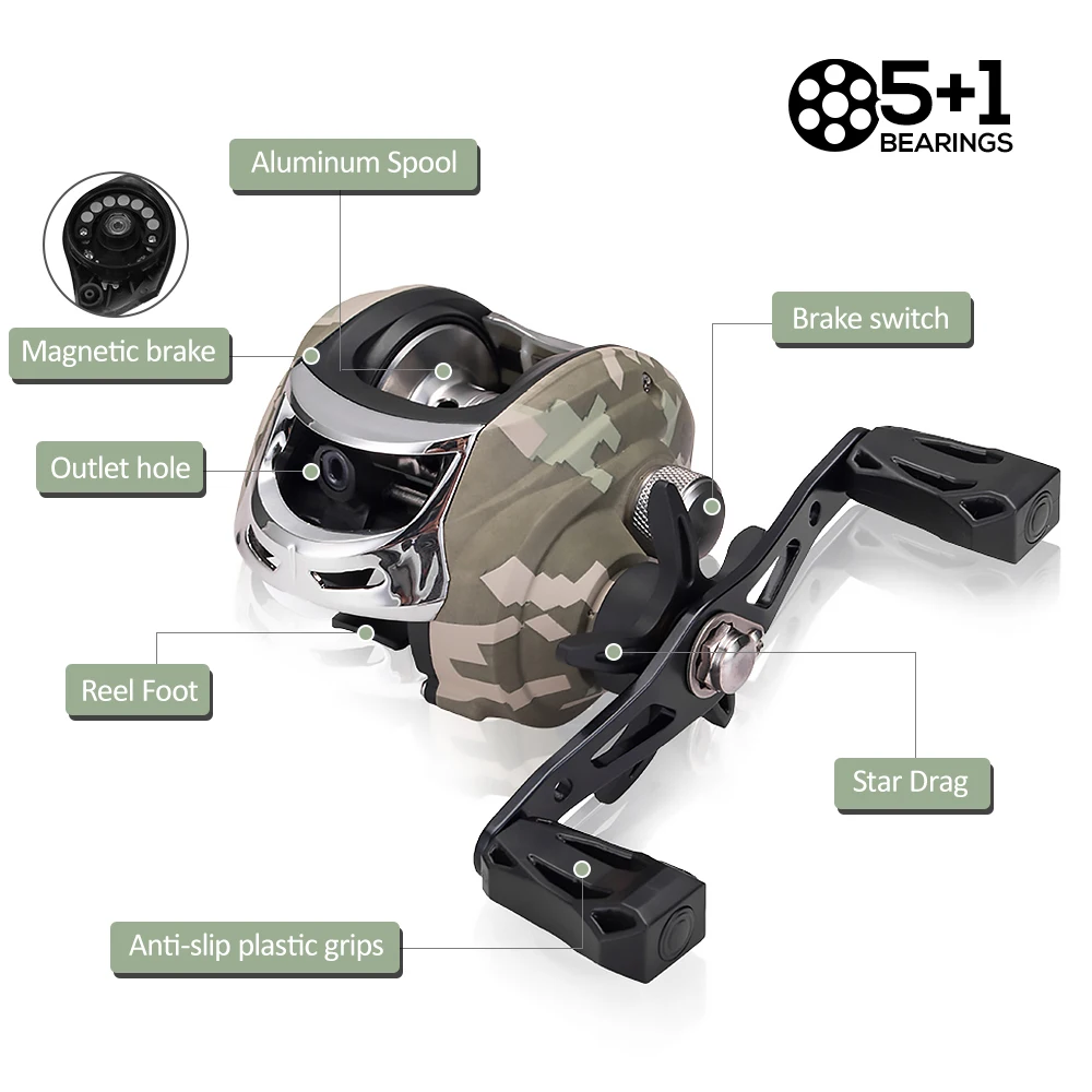 This Product is one of Hot Product (New) Catalog and Category in Aliexpress, it meant get Good Sales and Good Rated by Most Buyers.Related Product for 5+1 Ball Bearings Baitcasting Fishing Reel with 7.3:1 Gear Ratio Fishing Bait Casting Reel Carp Fis
